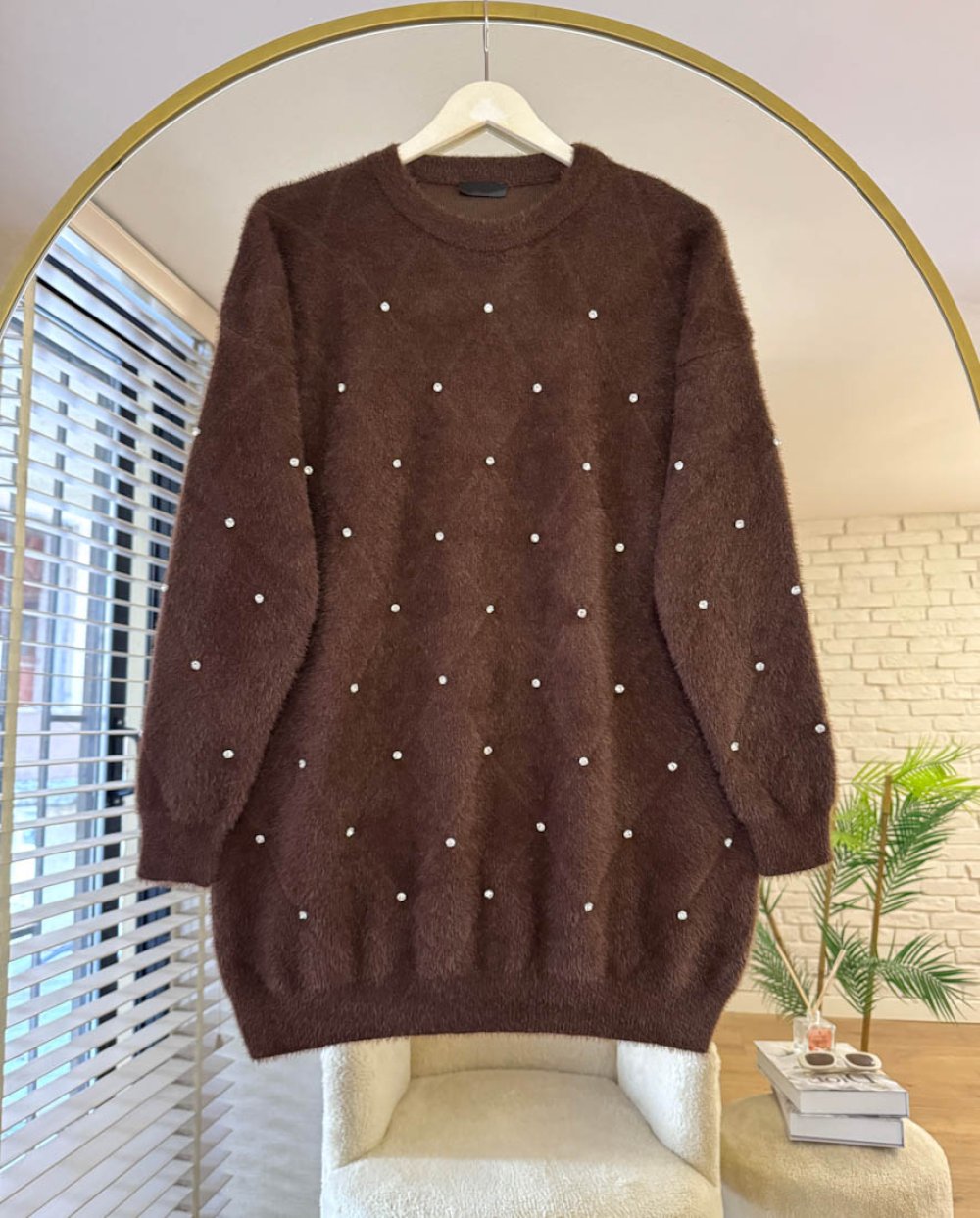 Angora Taşlı Tunik Kahverengi