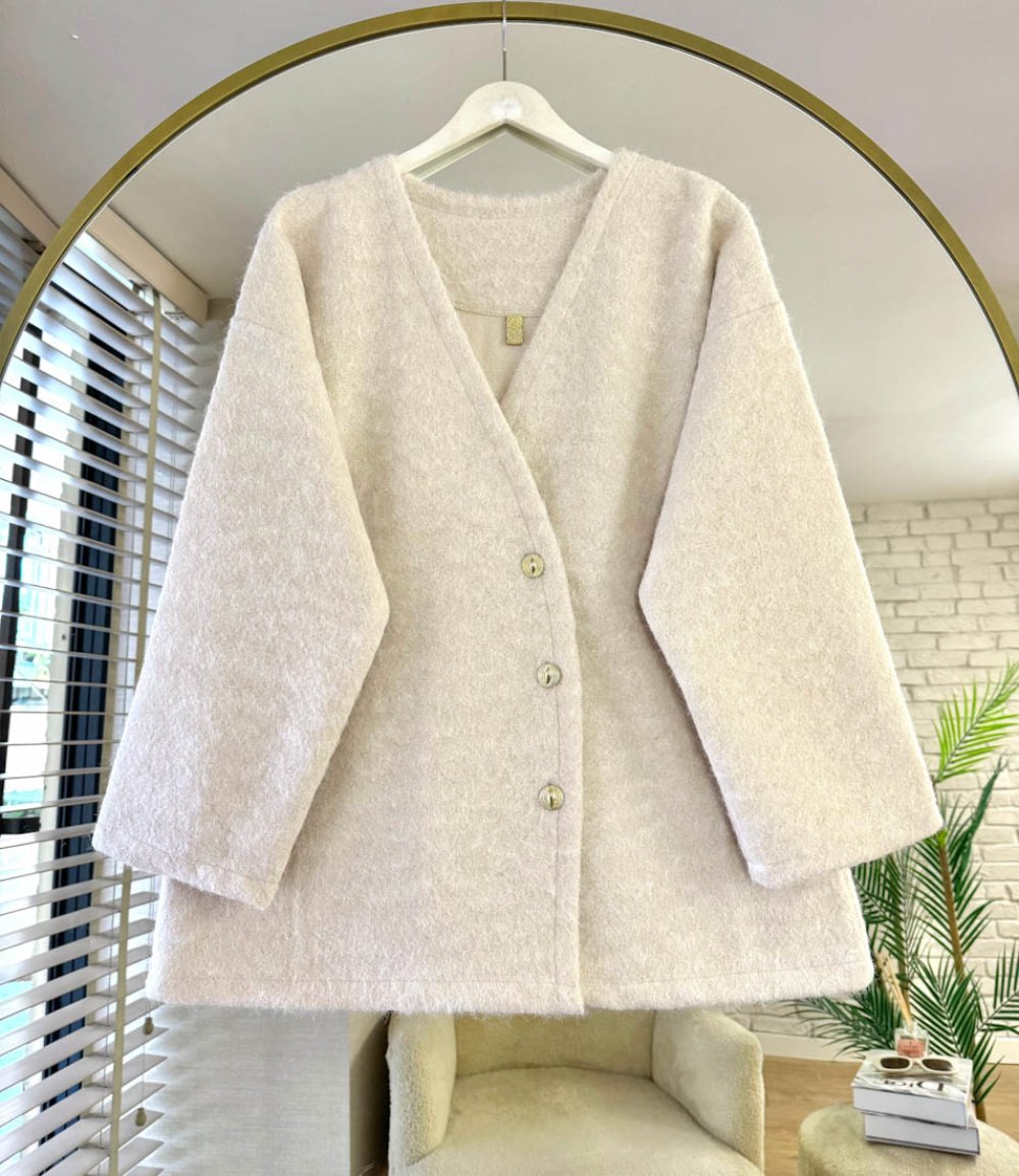 Asimetrik Düğmeli Kaşe Ceket Krem