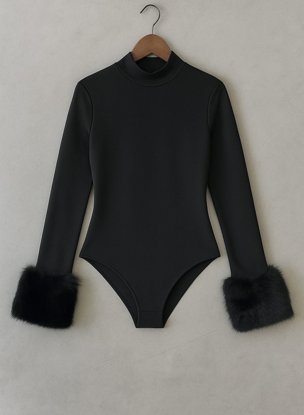 Balıkçı Yaka Kürk Detaylı Body Siyah