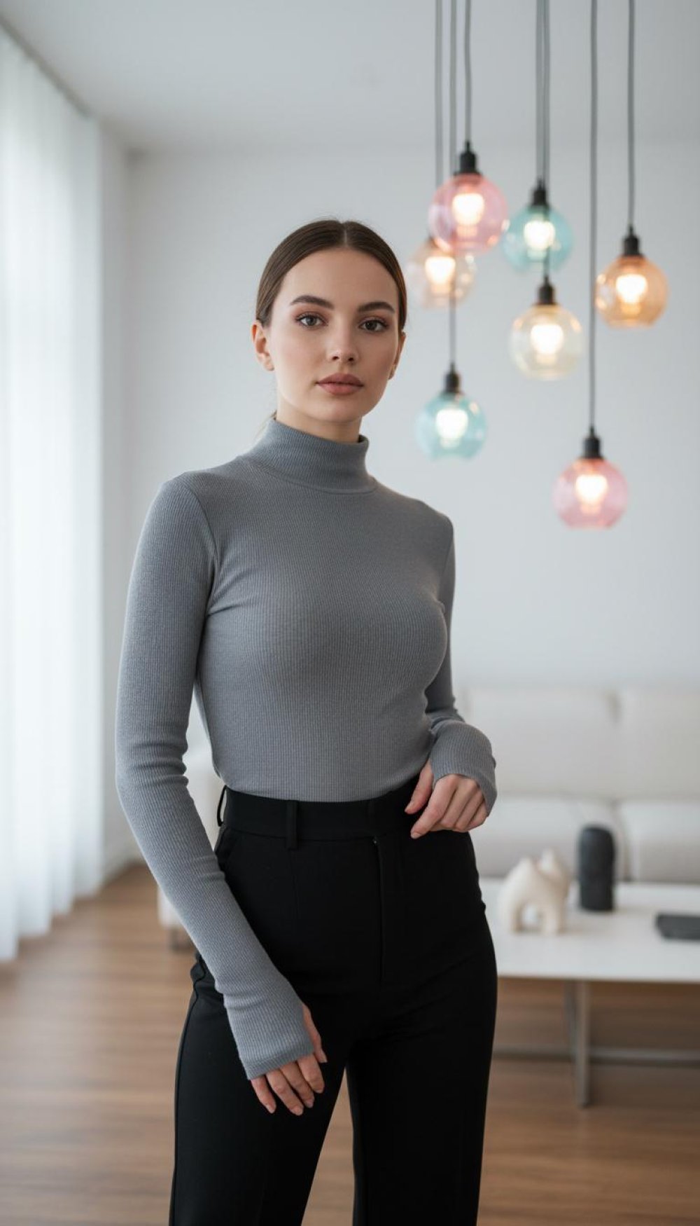 Balıkçı Yaka Parmak Geçmeli Body Gri