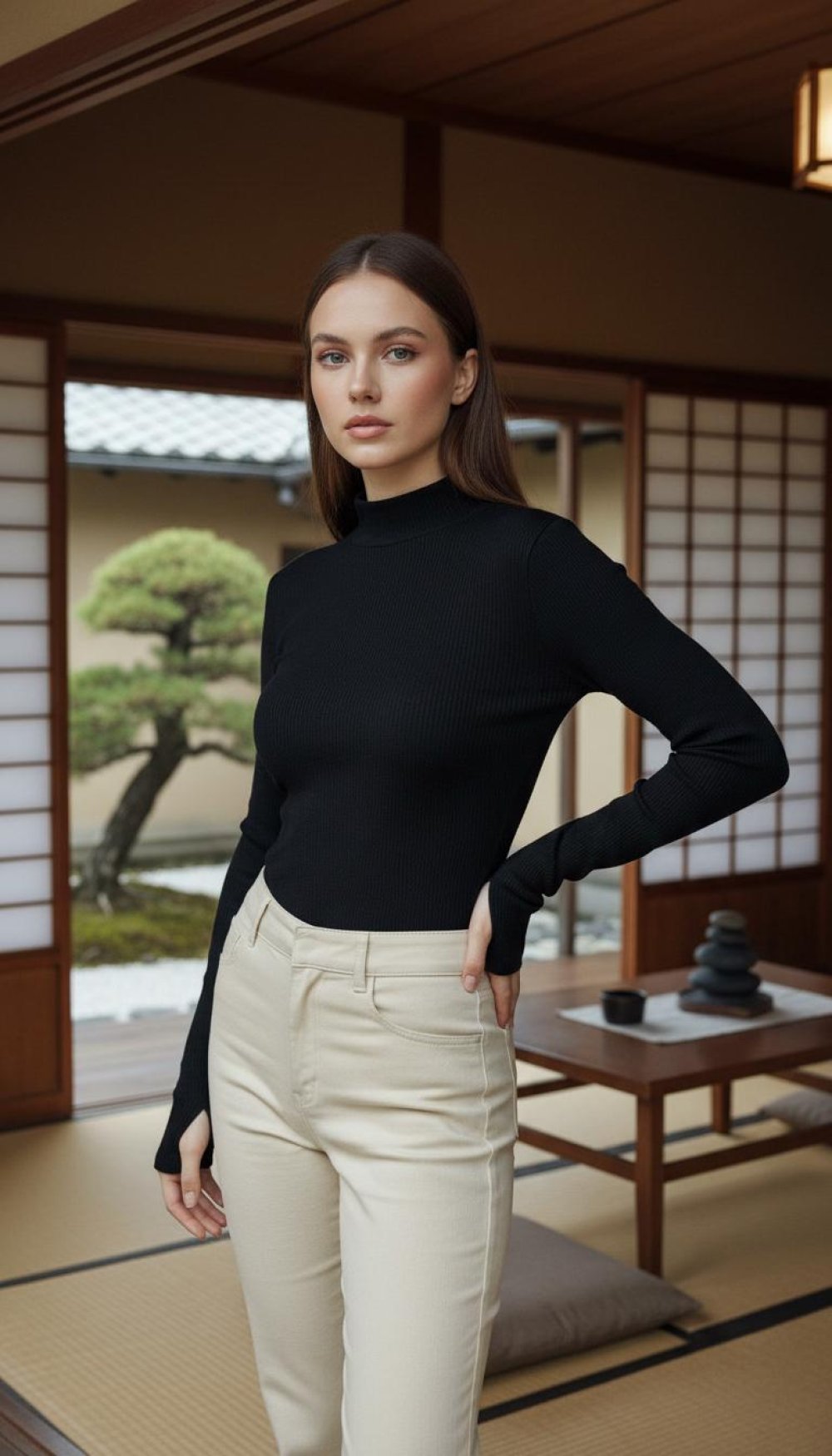 Balıkçı Yaka Parmak Geçmeli Body Siyah