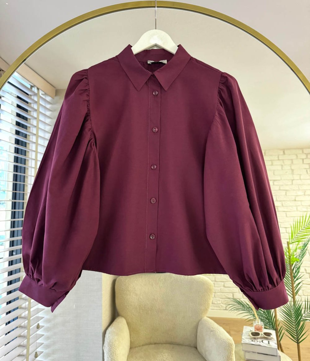 Balon Kol Kısa Gömlek Bordo