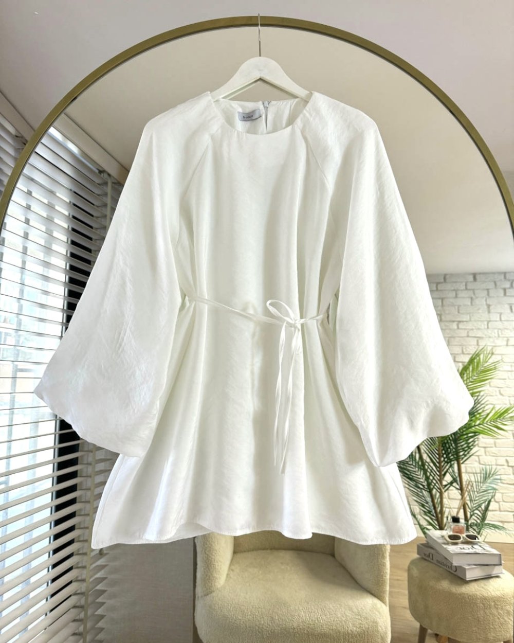 Balon Kol Modal Tunik Ekru