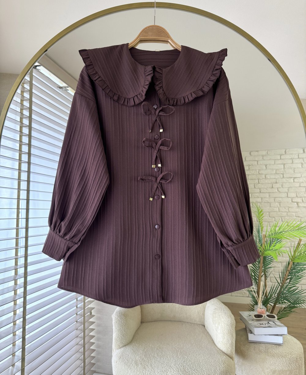 Bebe Yaka Fiyonklu Gömlek Acı Kahve