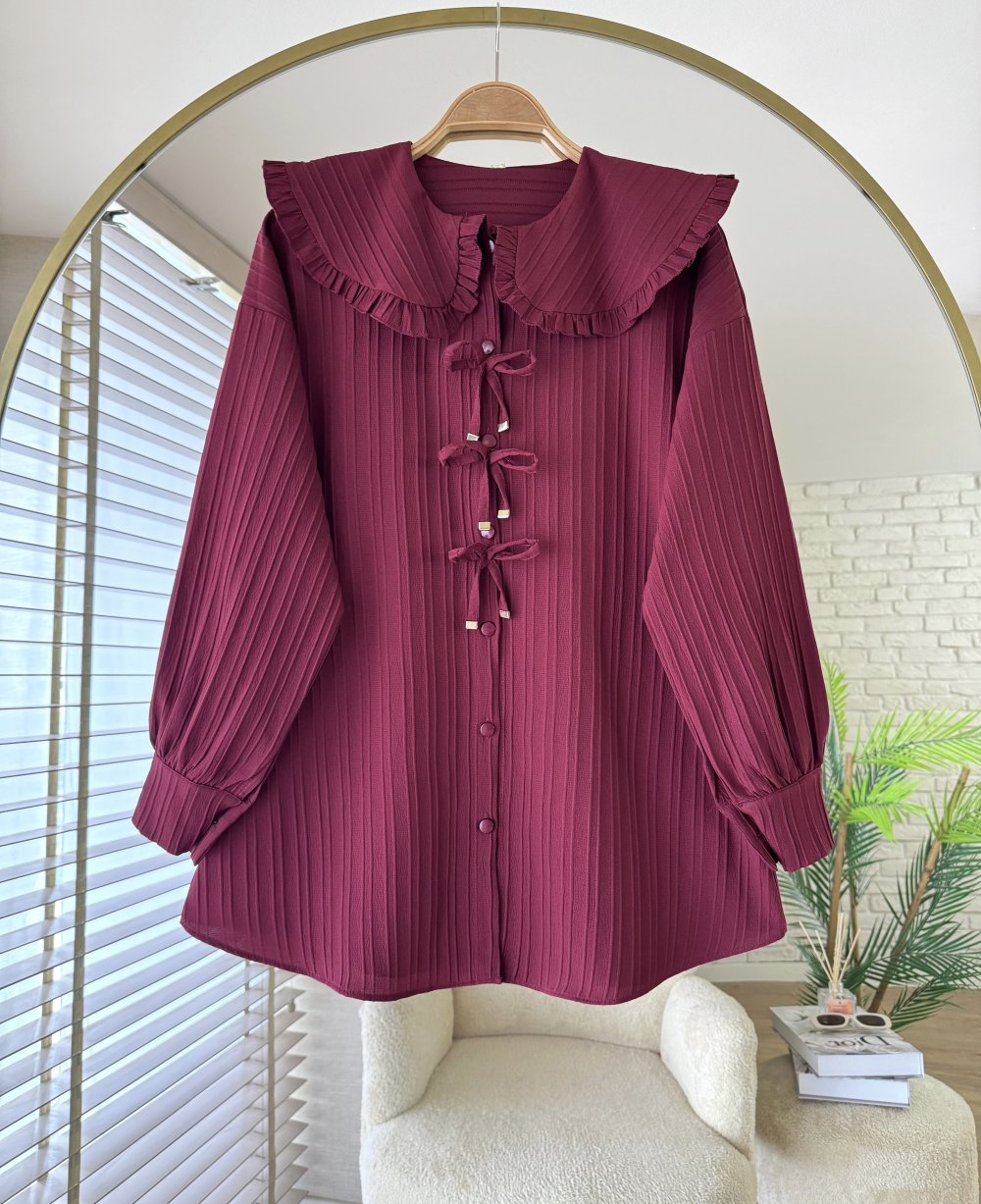 Bebe Yaka Fiyonklu Gömlek Bordo