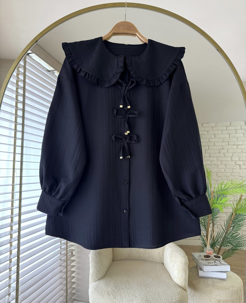 Bebe Yaka Fiyonklu Gömlek Siyah