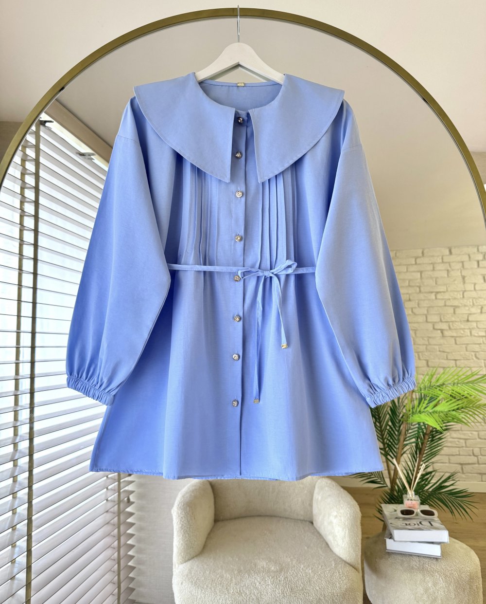 Bebe Yaka Nervürlü Gömlek Mavi