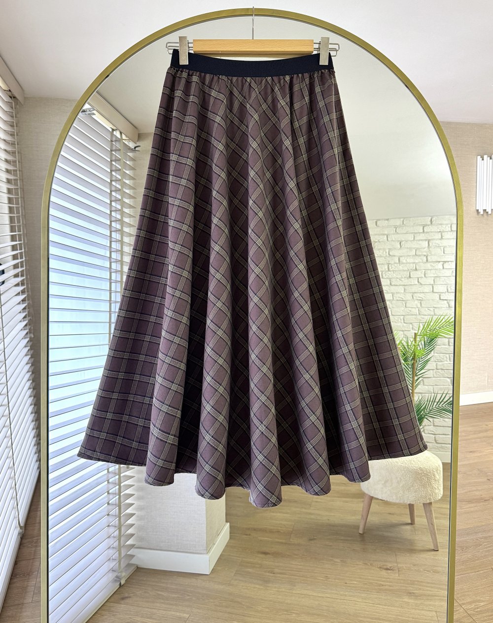 Beli Lastikli Mevlana Ekose Etek Kahverengi - Haki