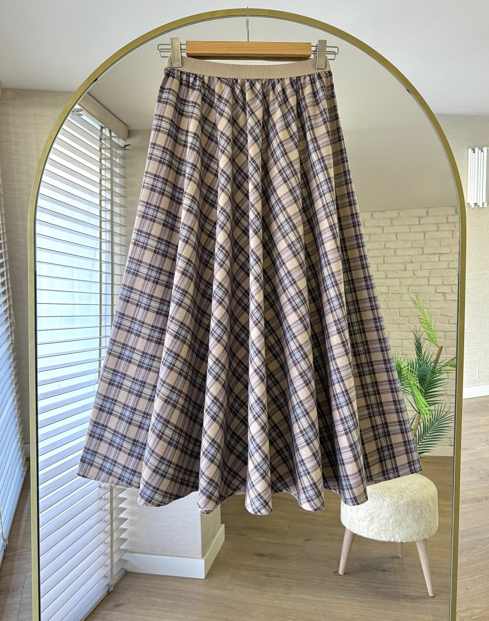 Beli Lastikli Mevlana Ekose Etek Sütlü Kahve