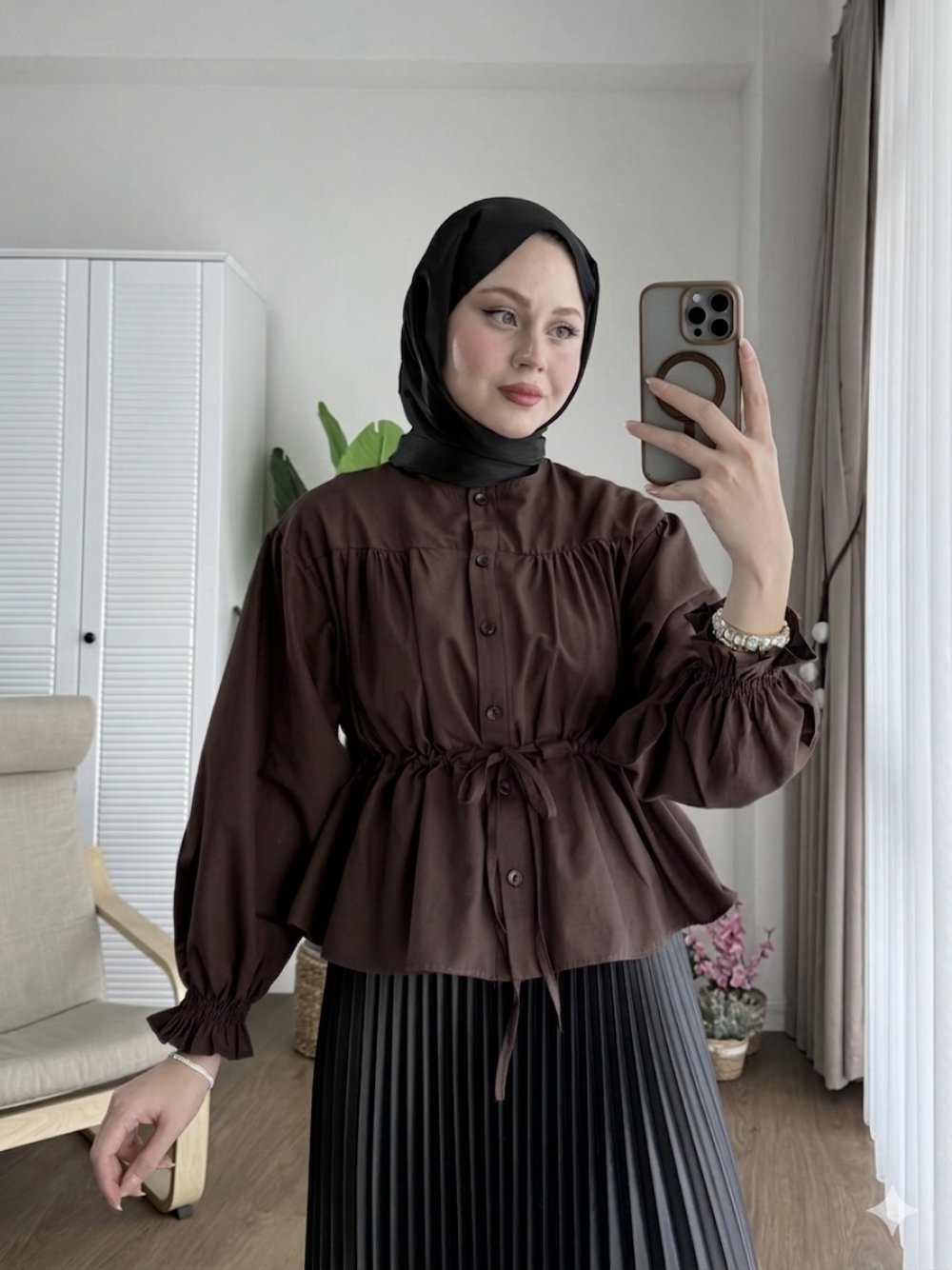 Beli Tünelli Kısa Gömlek Koyu Kahverengi