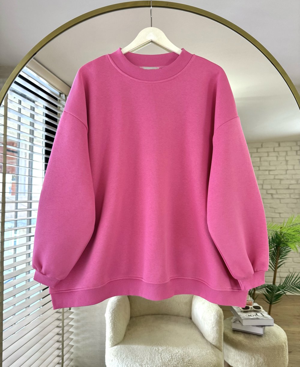 Bisiklet Yaka Oversize Sweatshirt Pembe