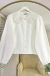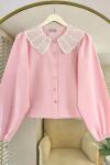 Boncuk Yakalı Kısa Gömlek Bordo