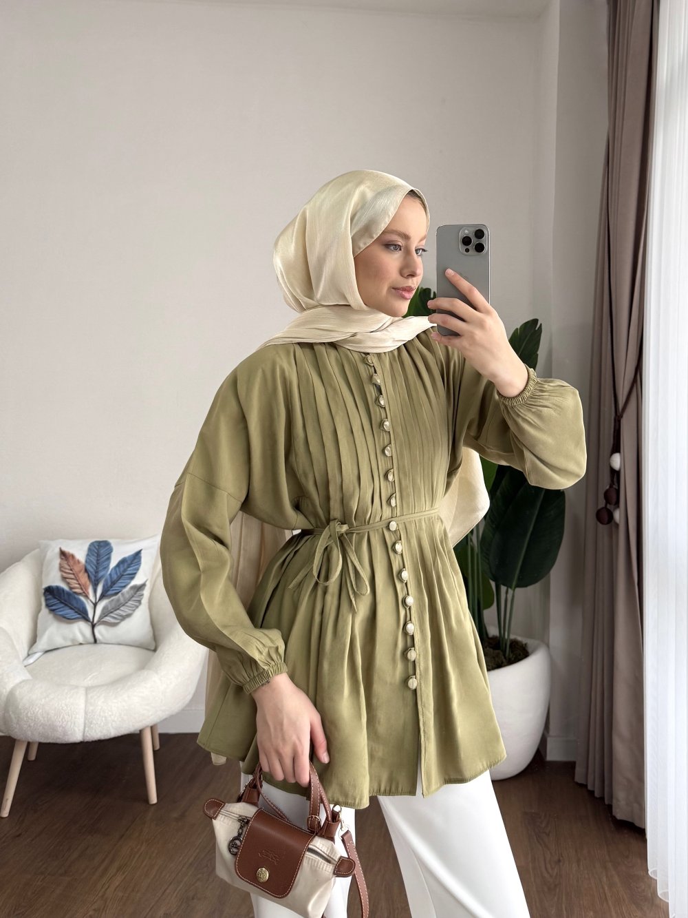 Brit Düğmeli Nervürlü Gömlek Yeşil