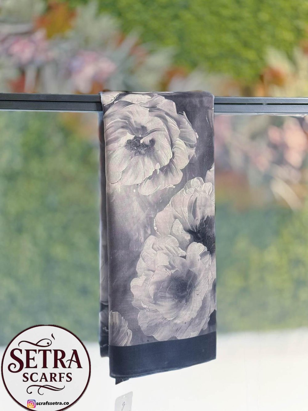 Çiçek Desenli Şal Siyah Gri