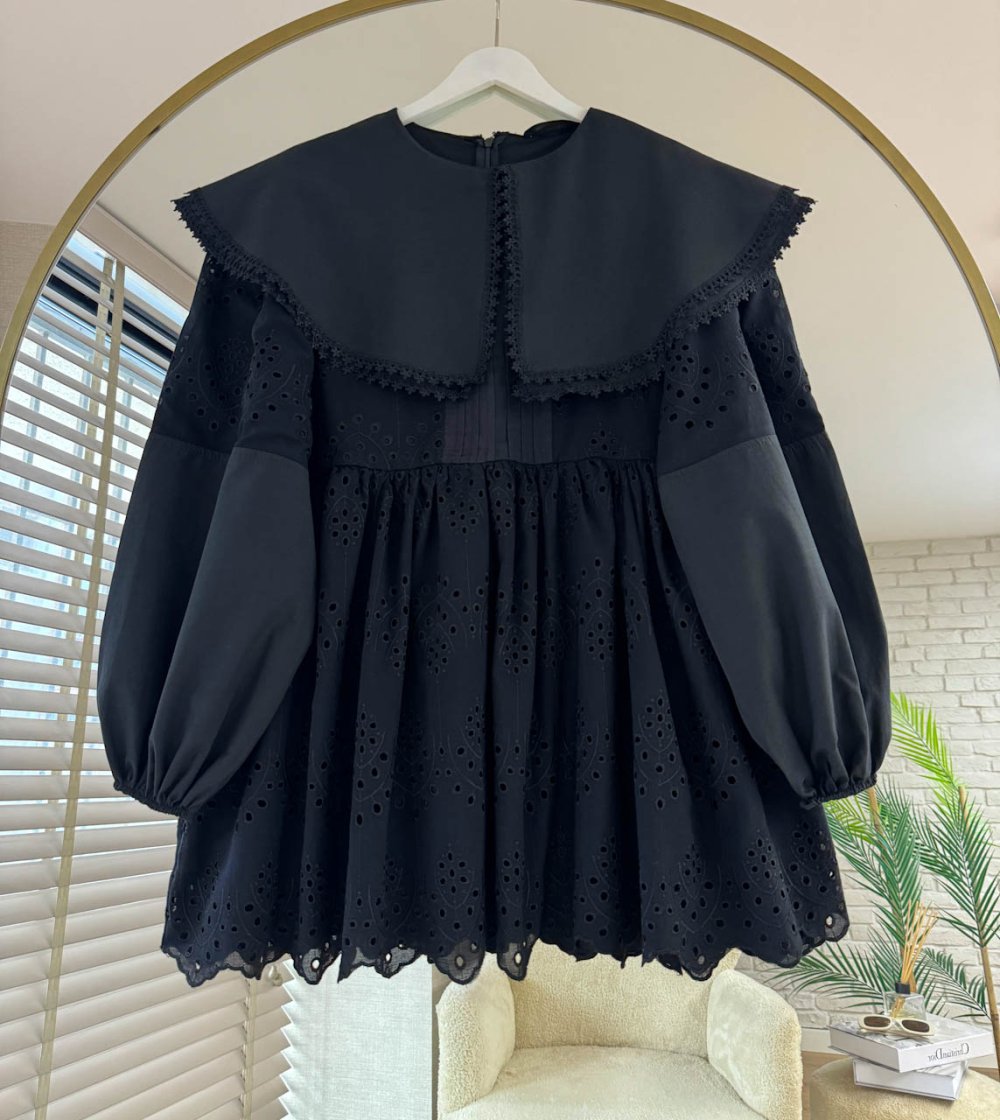 Çift Yaka Brode Tunik Siyah