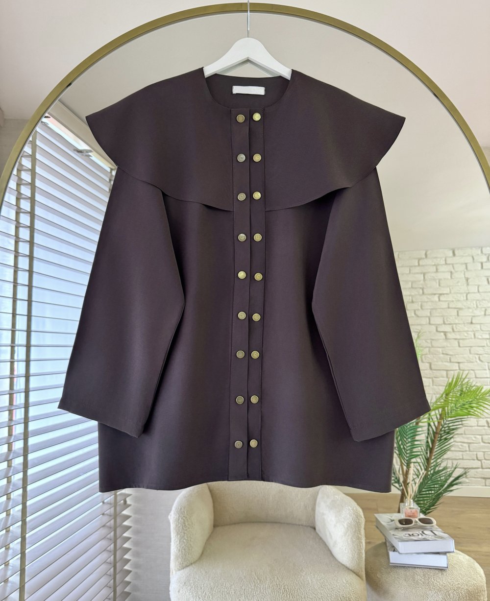 Çıt Çıt Düğmeli Bebe Yaka Gömlek Acı Kahve