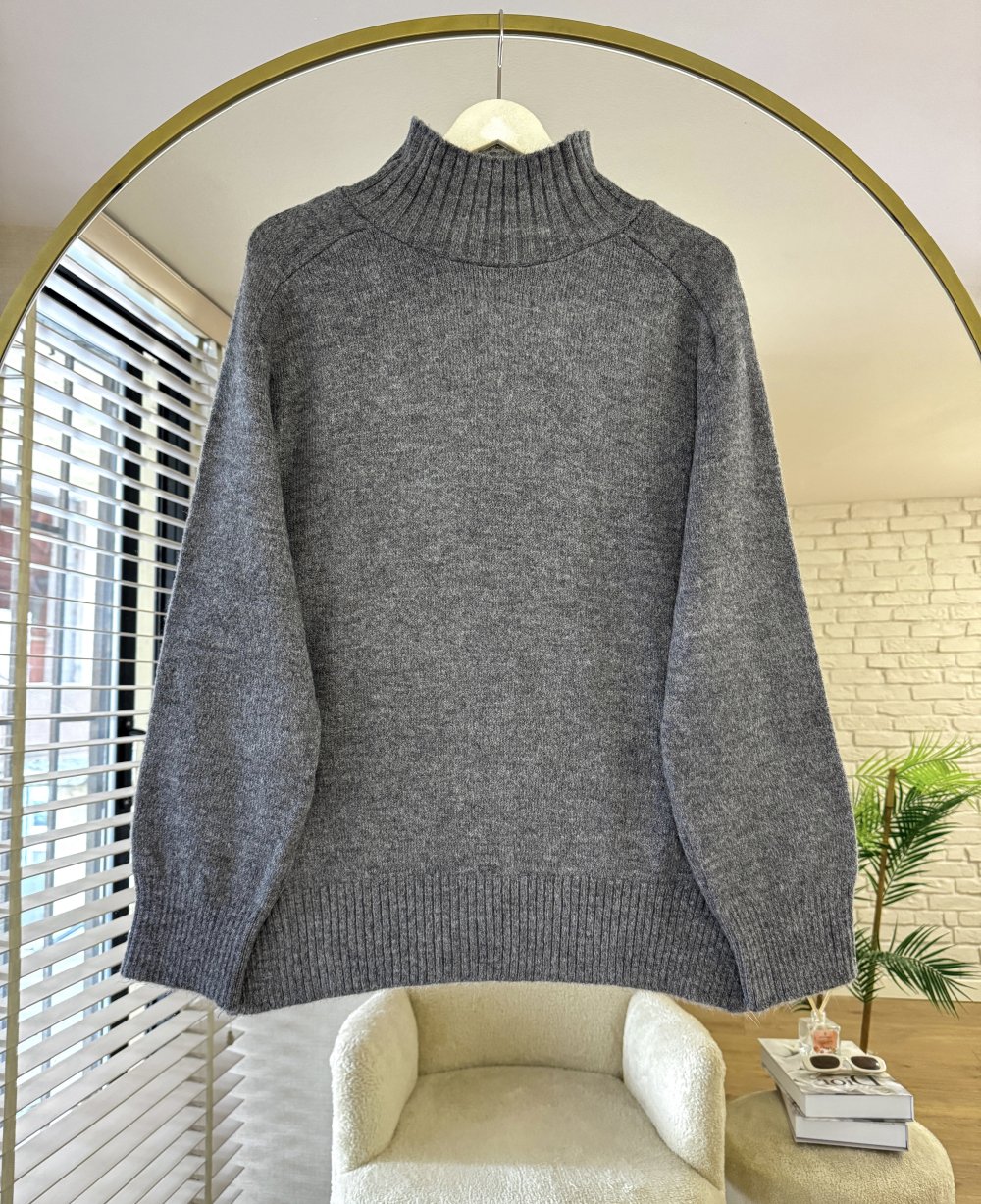 Dik Yaka Yırtmaçlı Oversize Kazak Antrasit