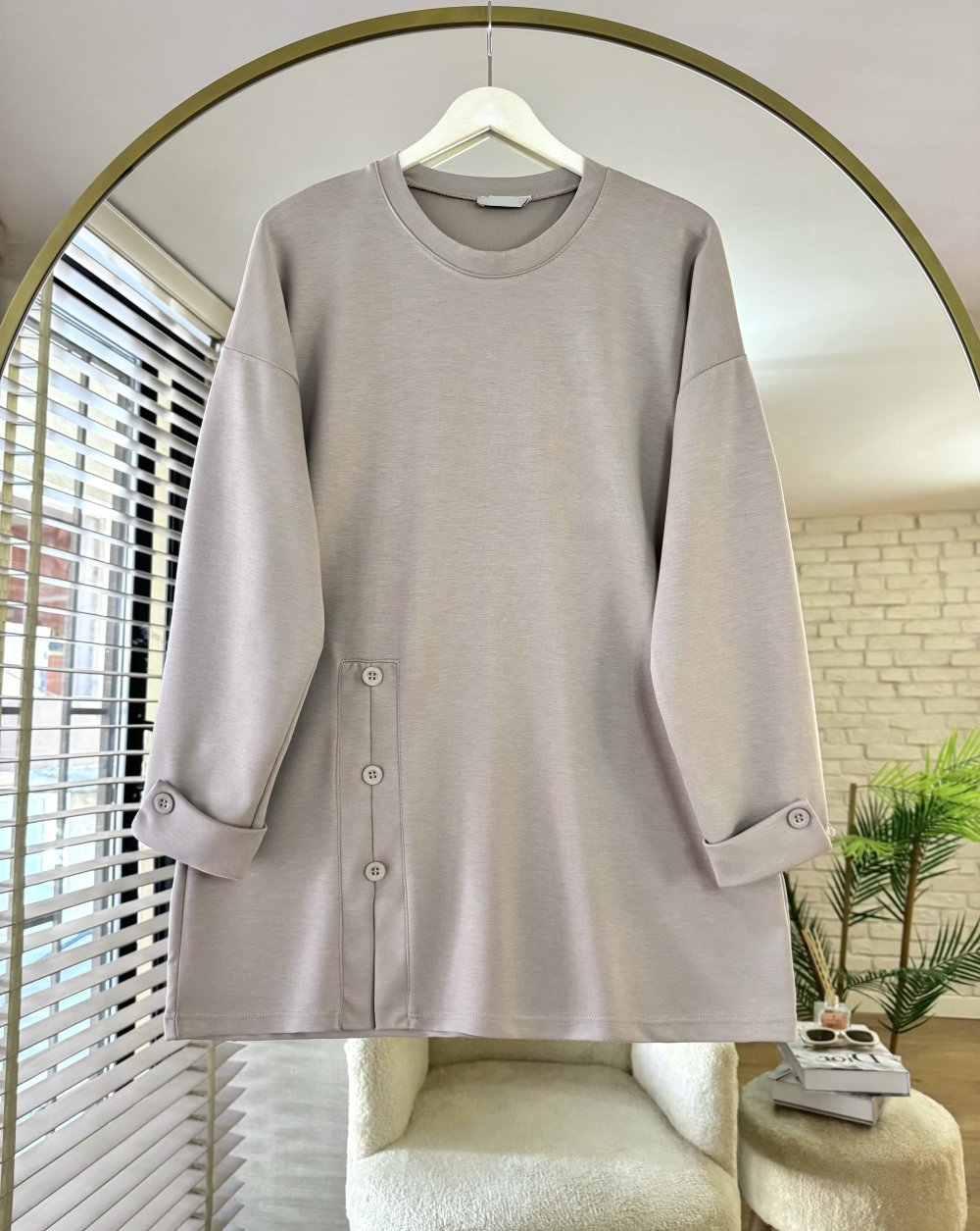 Düğme Detaylı Modal Tunik Bej