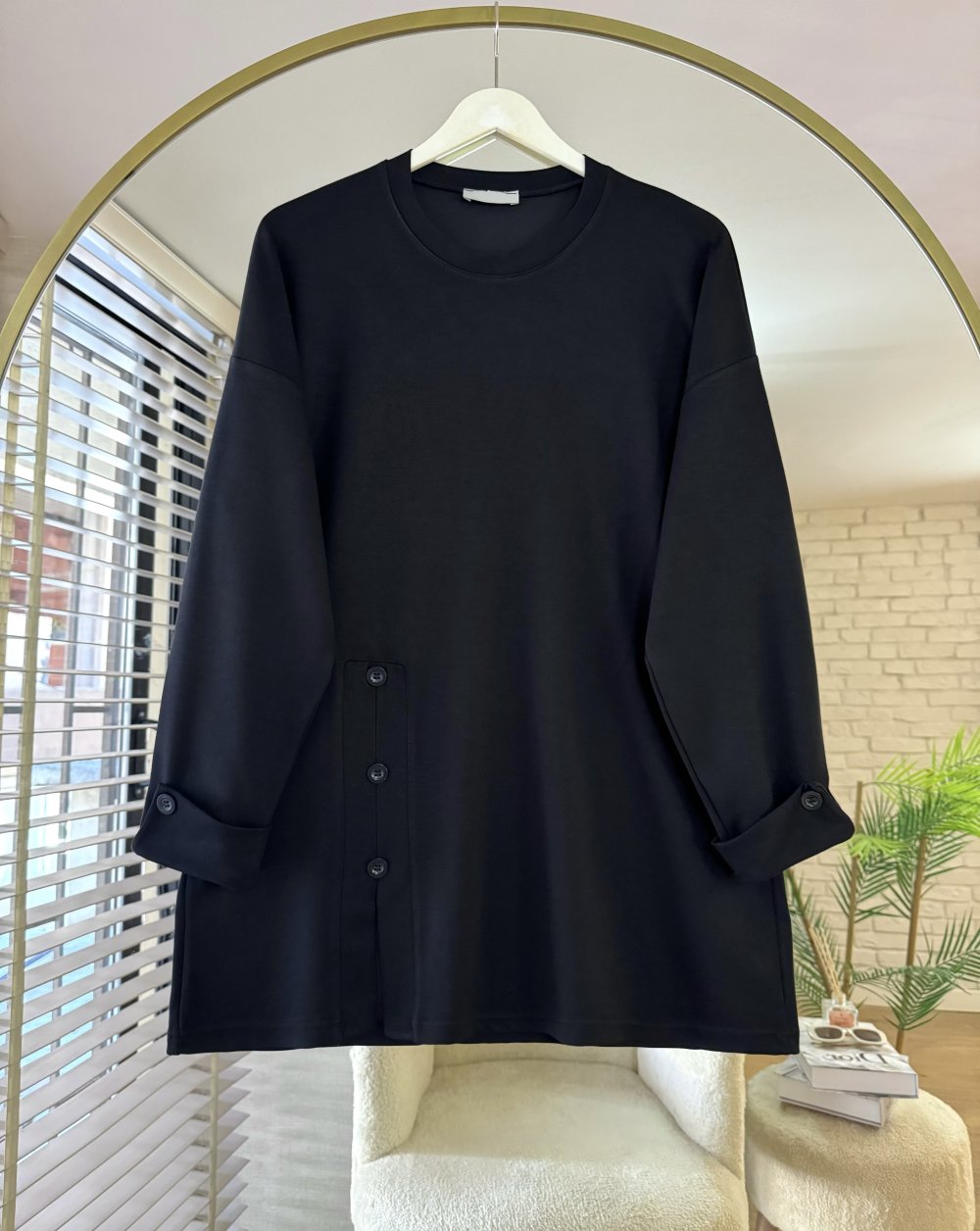 Düğme Detaylı Modal Tunik Siyah