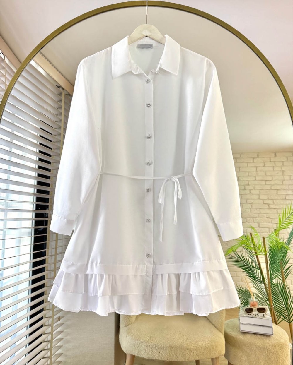 Eteği Fırfırlı Tunik Beyaz