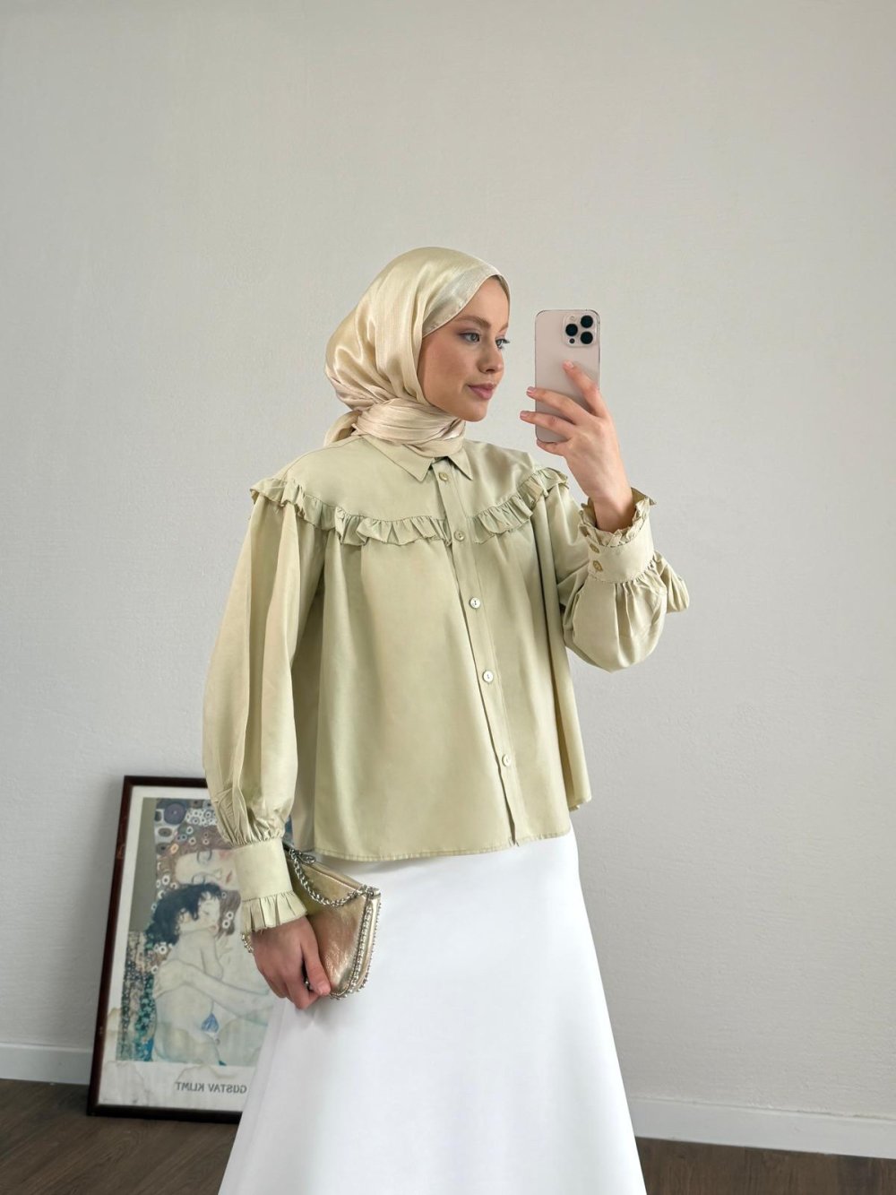 Fırfırlı Kısa Gömlek Açık Yeşil