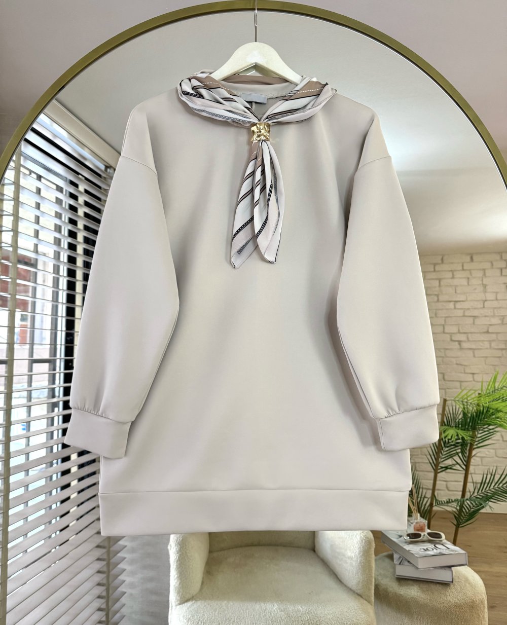 Fularlı Scuba Tunik Bej