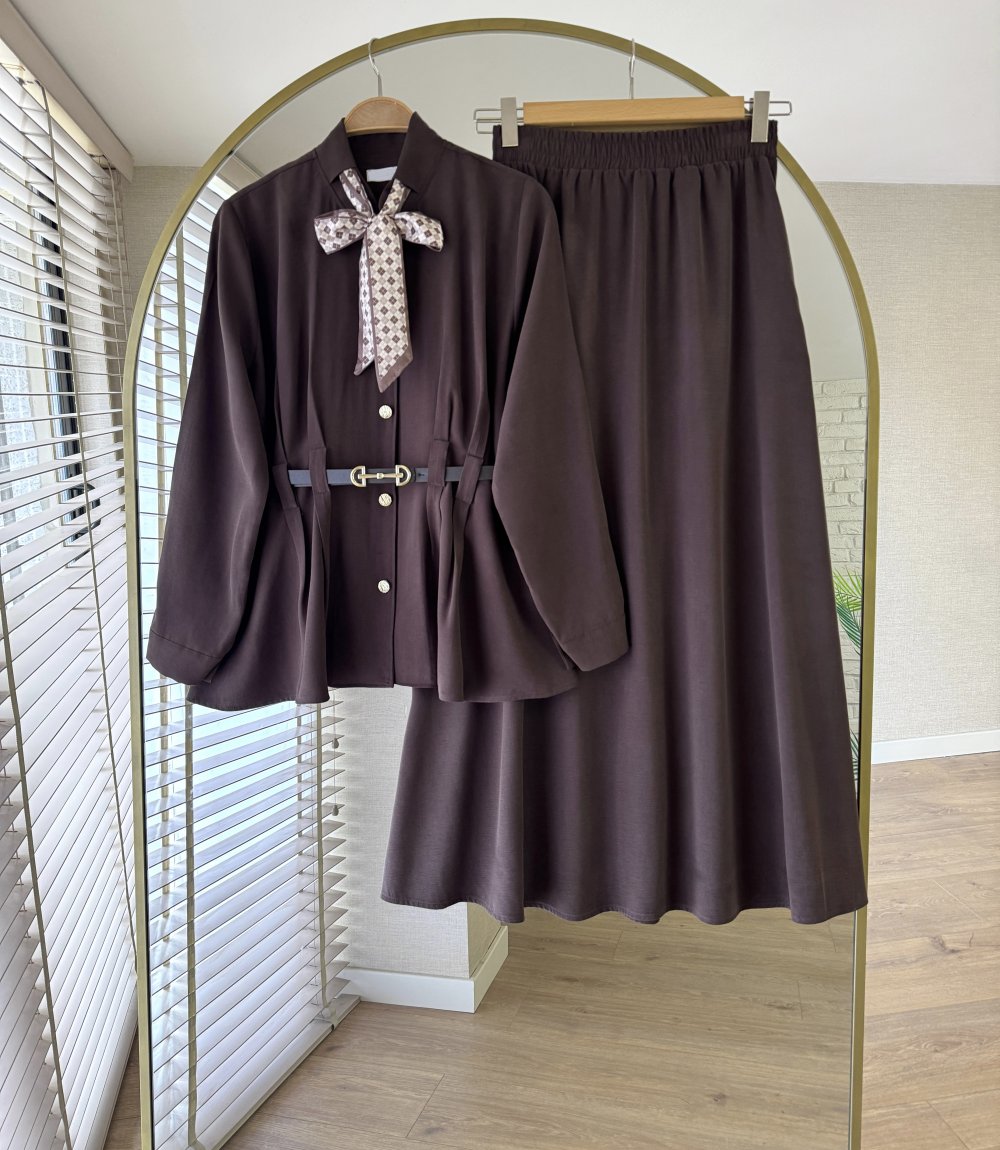 Fularlı Tensel Takım Kahverengi