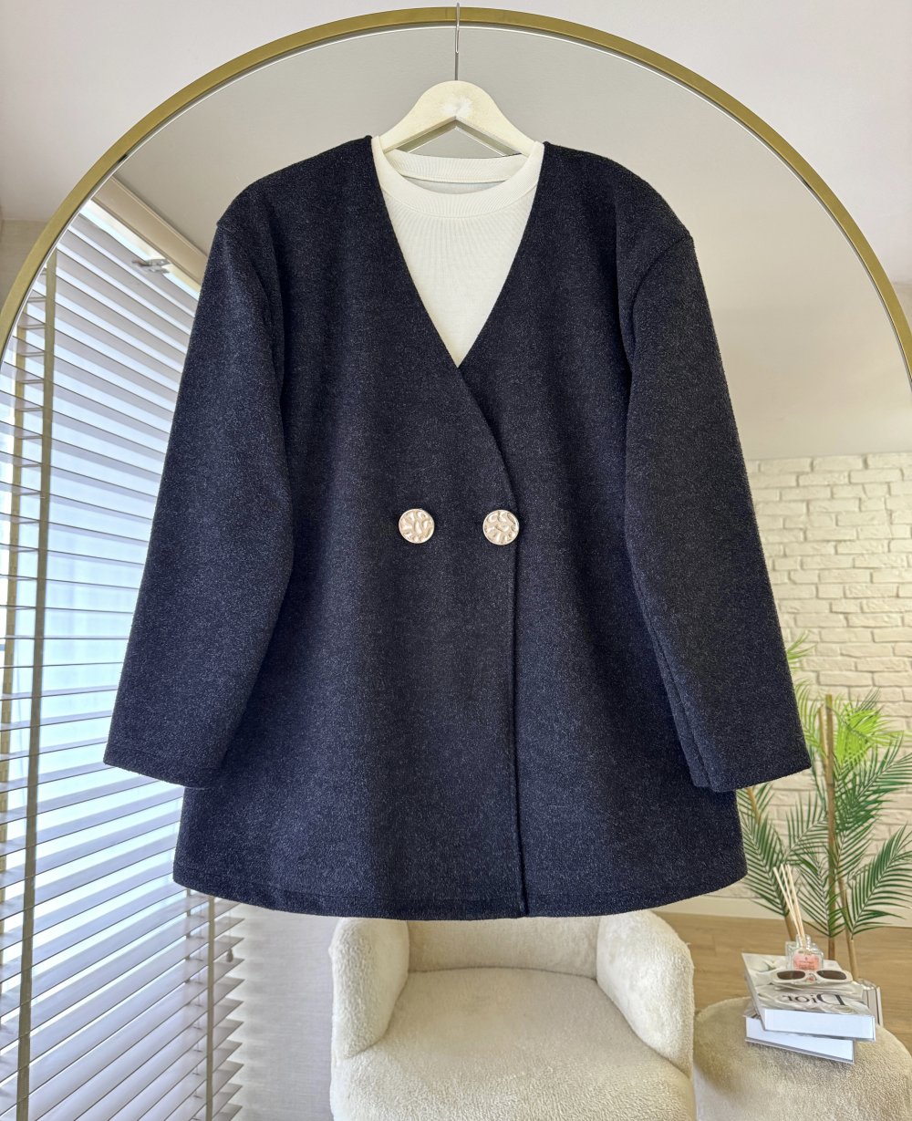 Gold Düğmeli Kaşe Ceket Antrasit