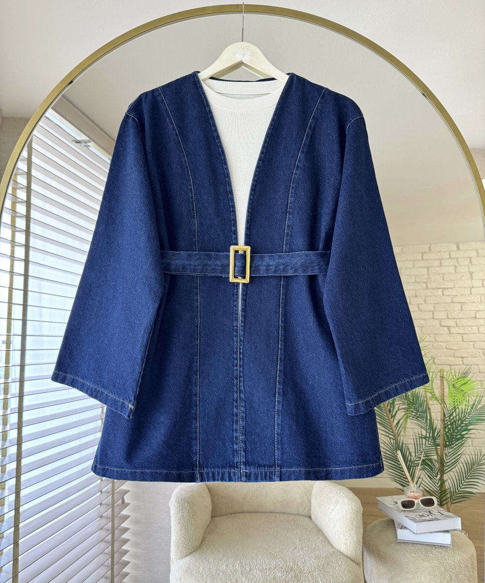 Gold Kemerli Kot Ceket Lacivert