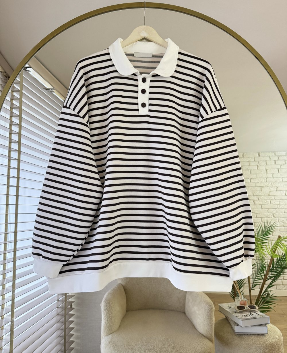 Gömlek Yaka Çizgili Salaş Sweatshirt Bordo
