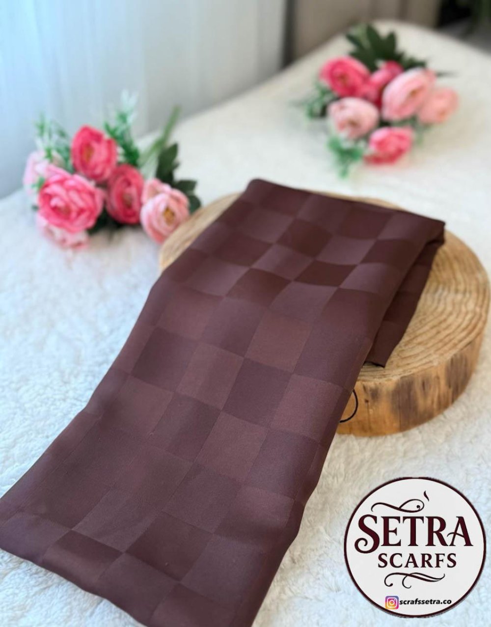 İpeksi Jakarlı Şal (Kare Desen) kahverengii
