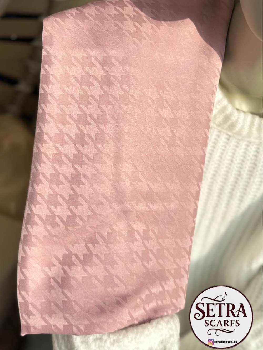 İpeksi Jakarlı Şal (Kaz Ayağı Desenli) Pudra