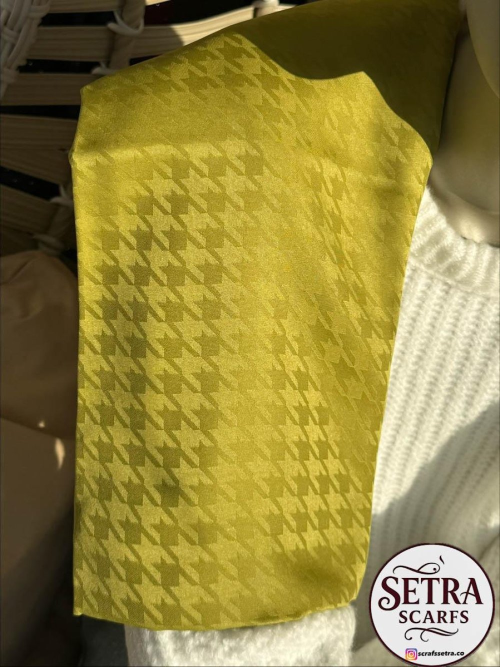 İpeksi Jakarlı Şal (Kaz Ayağı Desenli) Yağ Yeşili