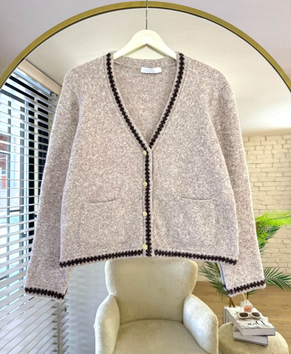 Jakar Desenli Cepli Hırka Vizon