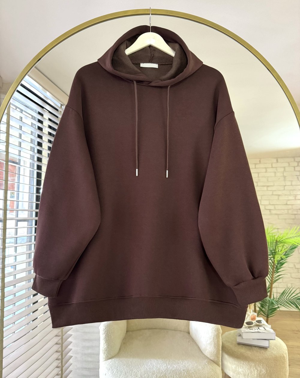 Kapüşonlu Oversize Sweatshirt Acı Kahve