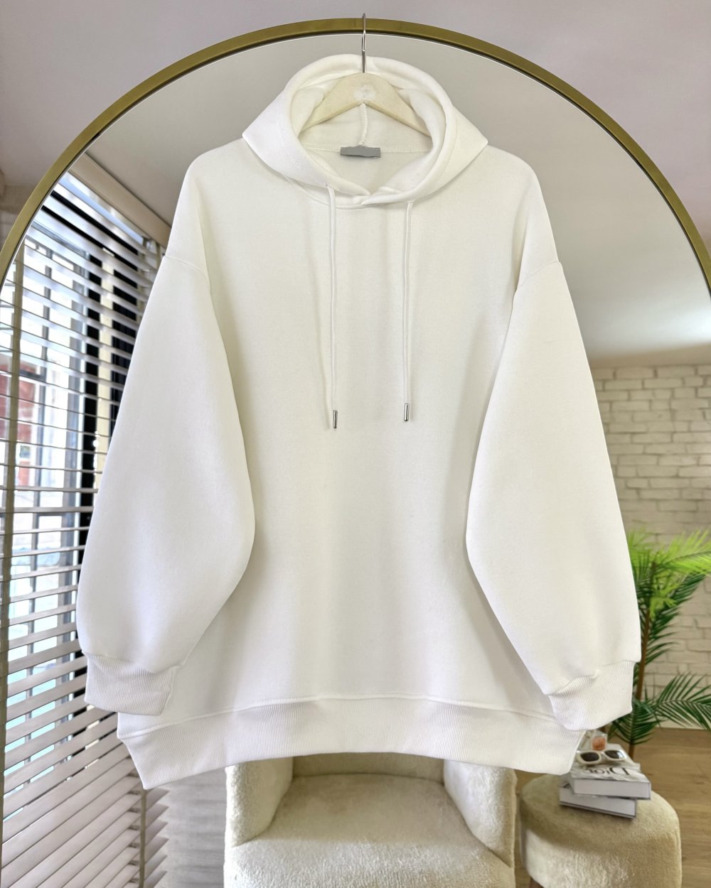 Kapüşonlu Oversize Sweatshirt Beyaz