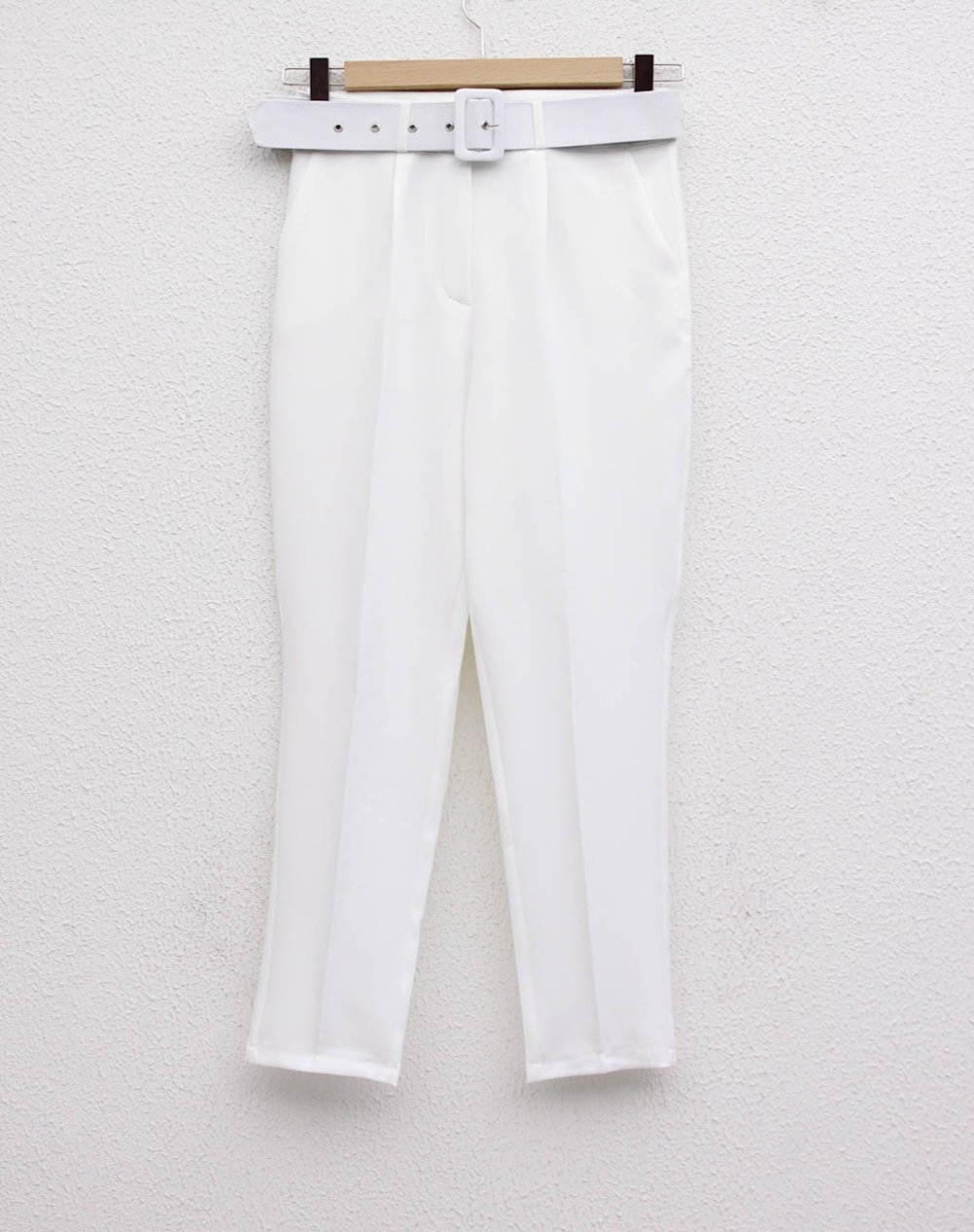 Kemerli Double Krep Pantolon Beyaz