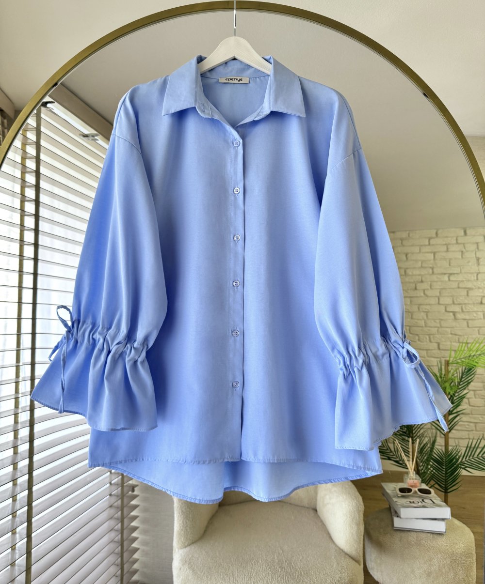 Kolları Büzgülü Gömlek Mavi