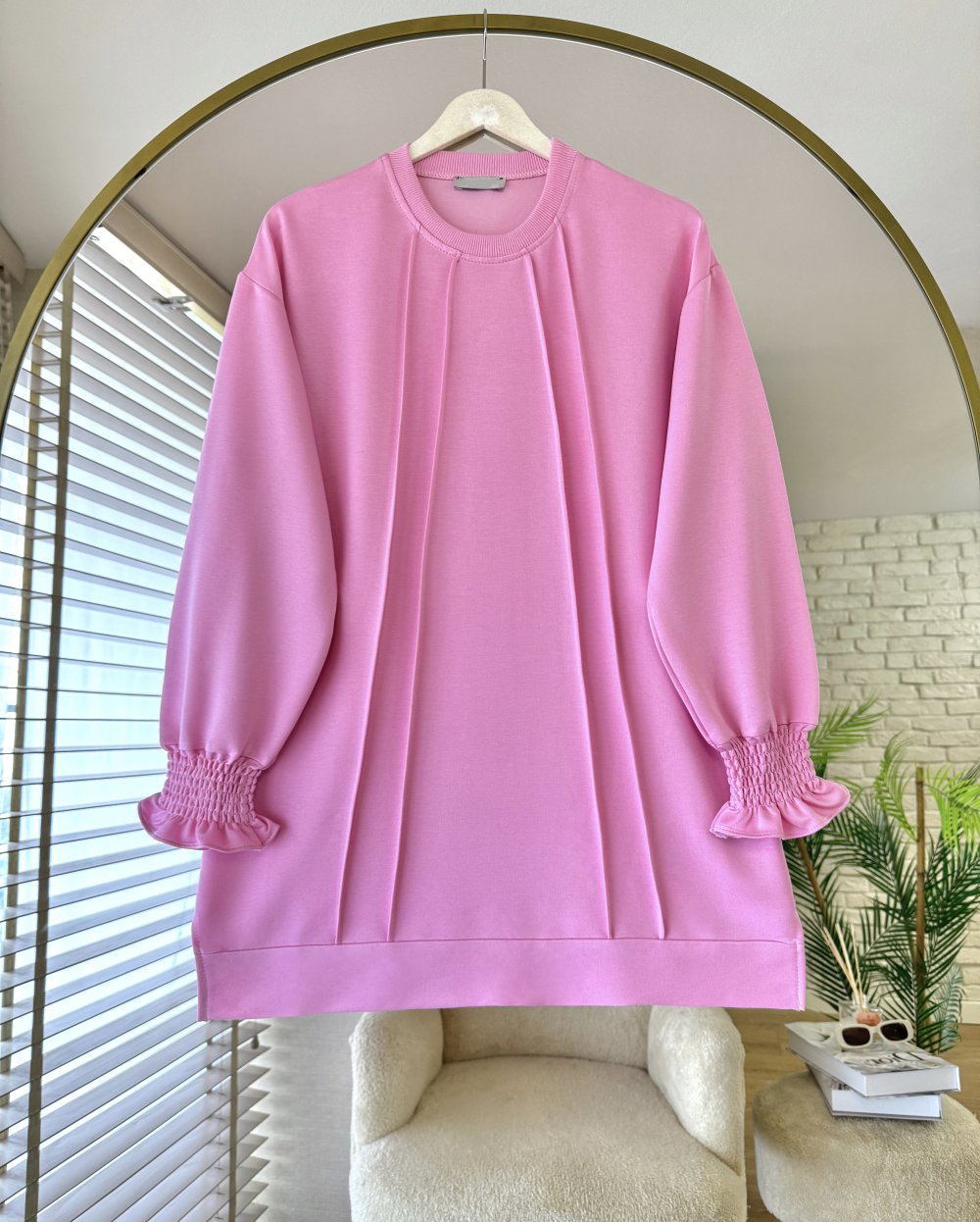 Kolları Gipeli Tunik Pembe