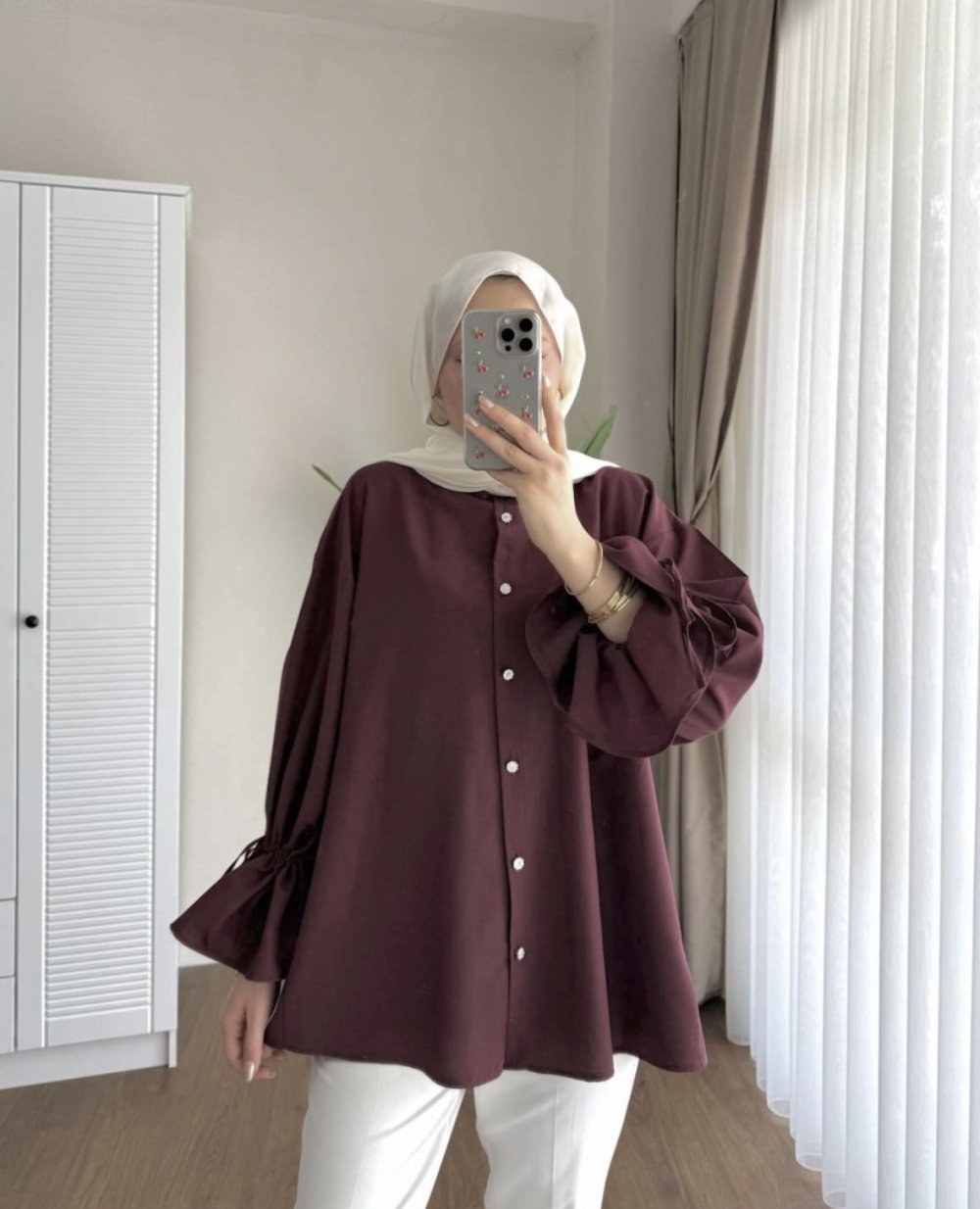 Kolu Büzgülü Arkası Piliseli Gömlek Bordo