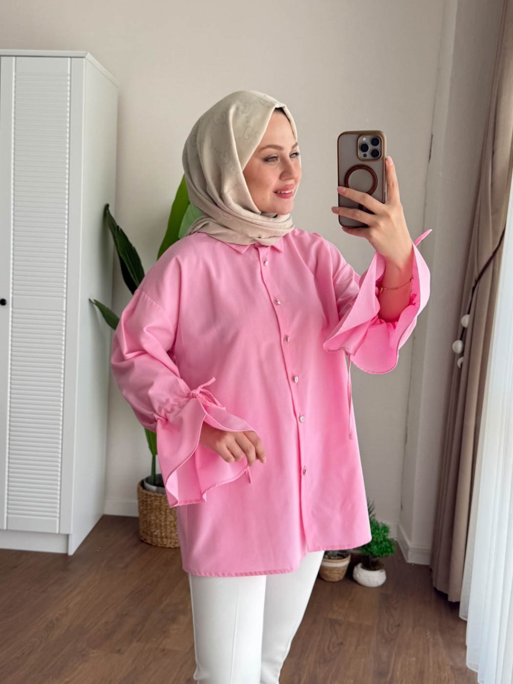 Kolu Büzgülü Arkası Piliseli Gömlek Pembe