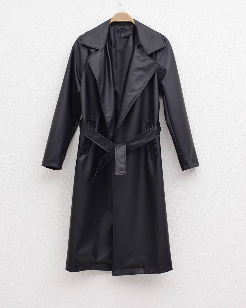Kuşaklı Deri Trençkot Siyah
