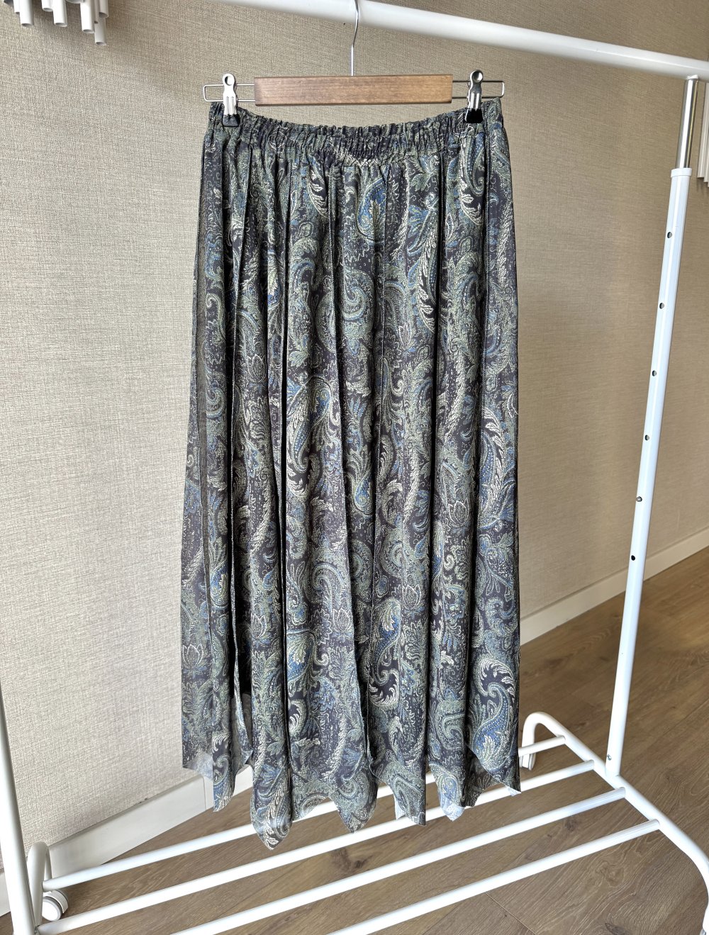 Lazer Kesim Şal Desenli Etek Yeşil