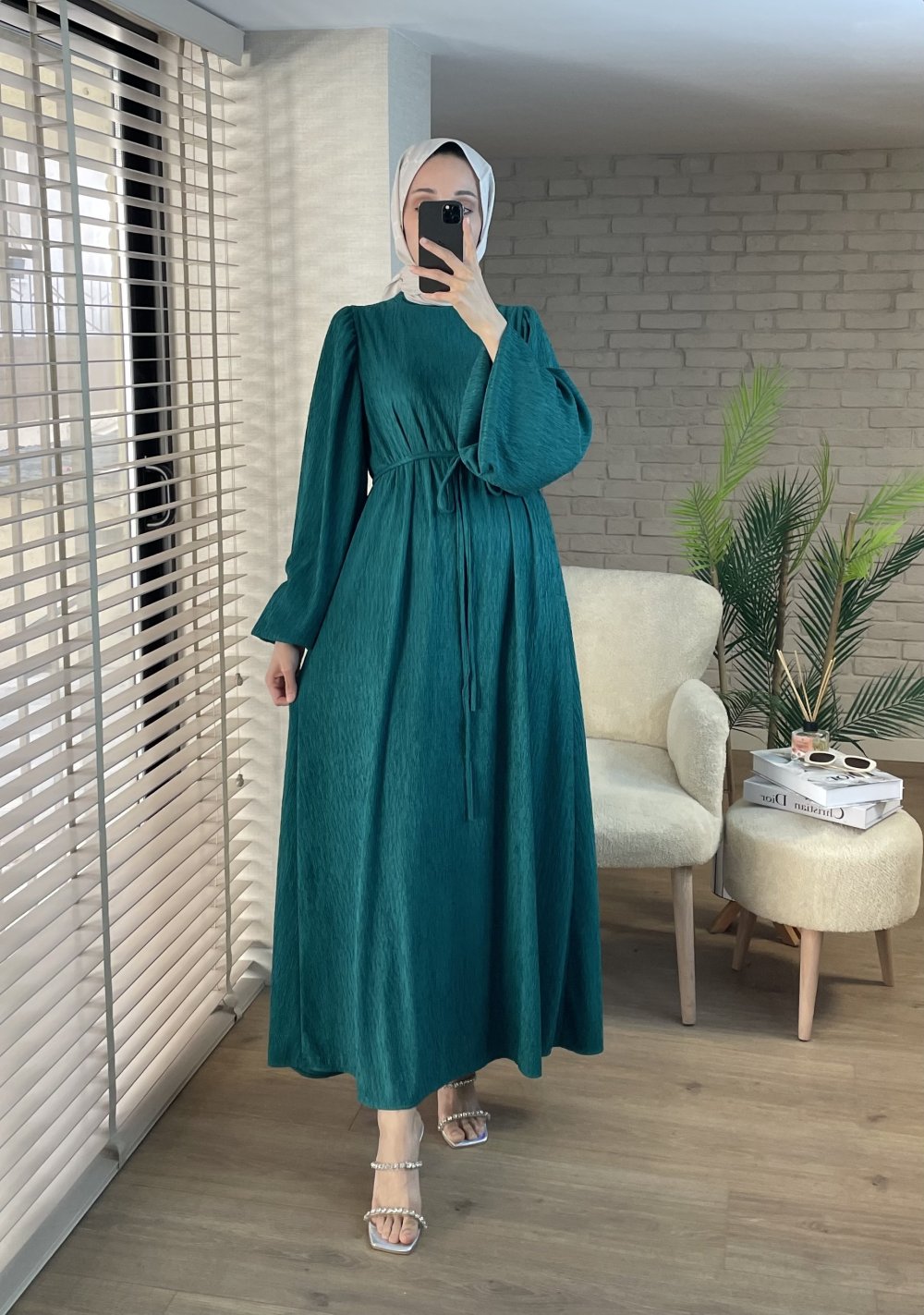 Melina Balon Kol Elbise Zümrüt