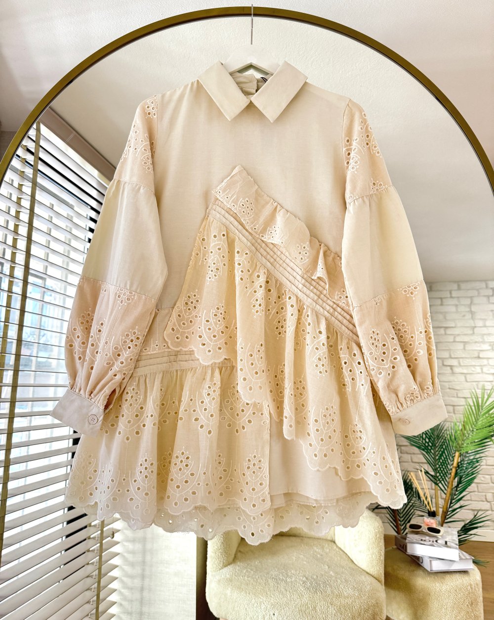 Nervürlü Brode Gömlek Krem