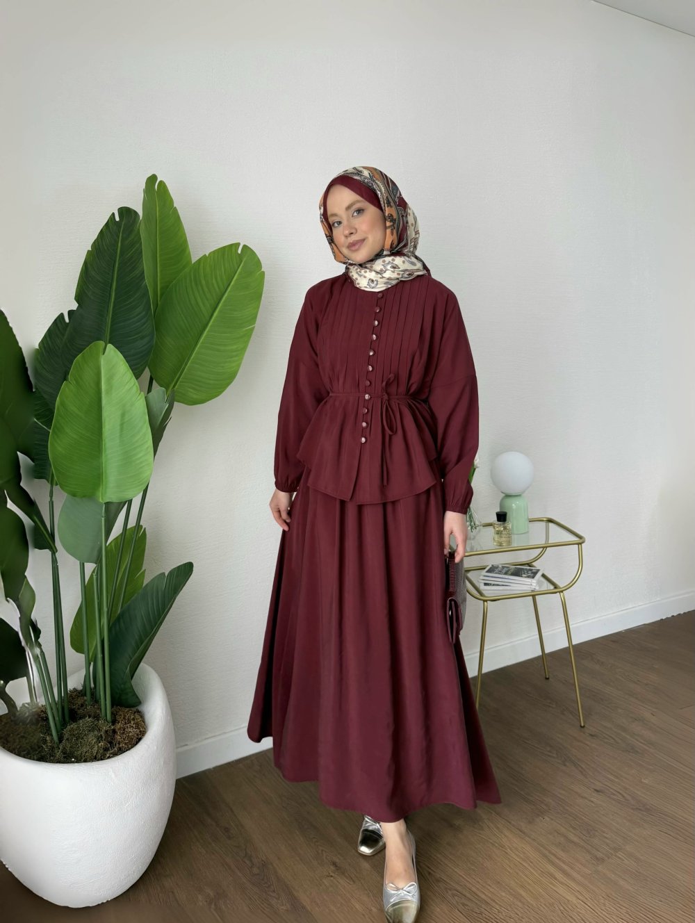 Nervürlü Etekli Takım Bordo