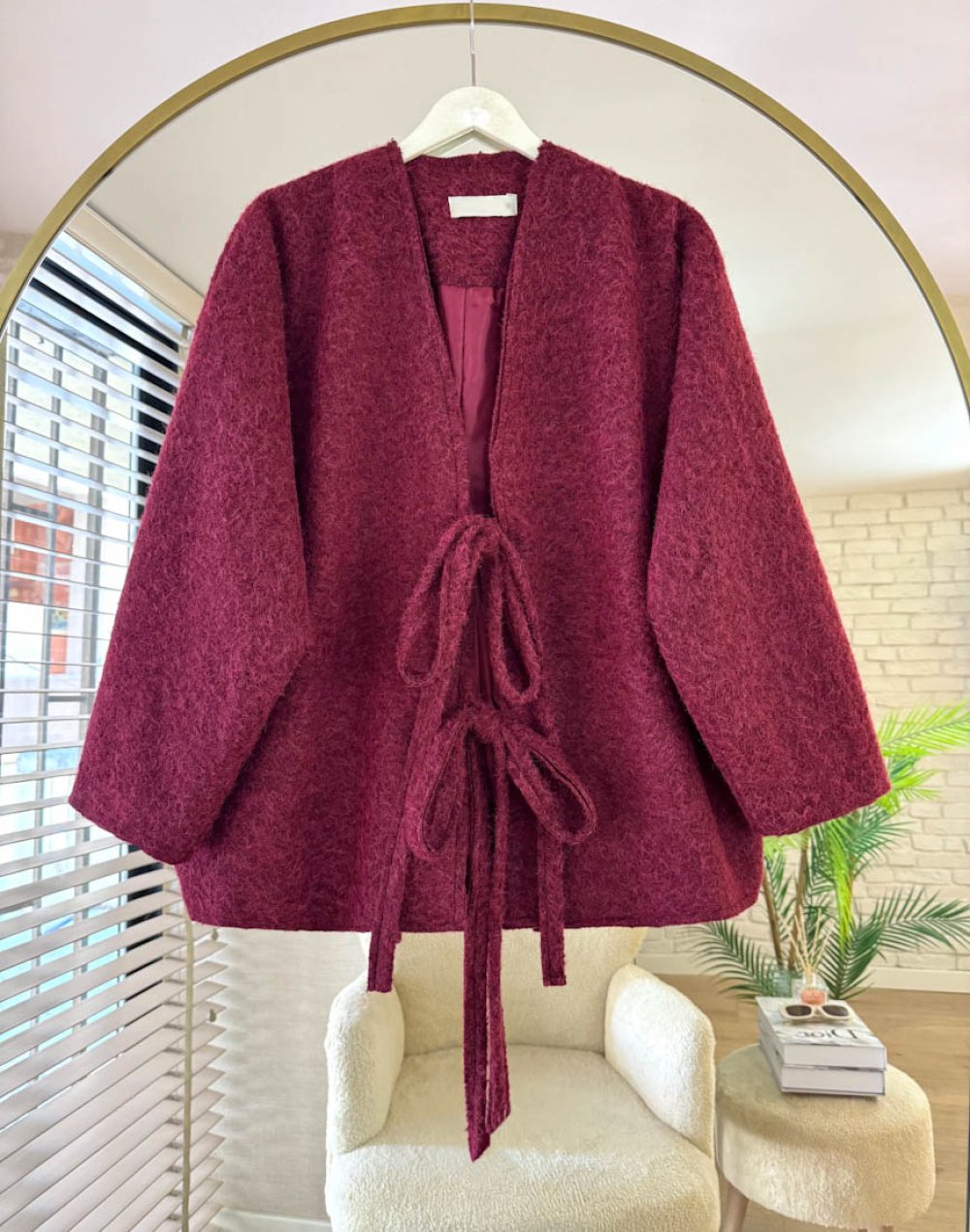 Önü Bağcıklı Kaşmir Ceket Bordo