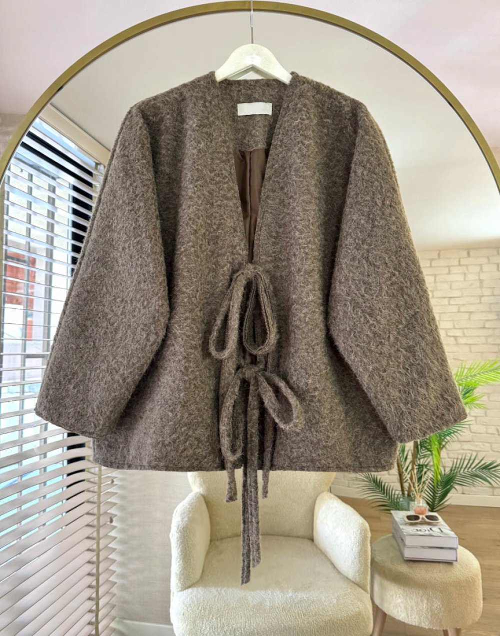 Önü Bağcıklı Kaşmir Ceket Kahverengi
