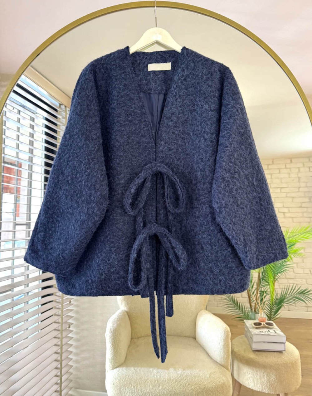 Önü Bağcıklı Kaşmir Ceket Lacivert