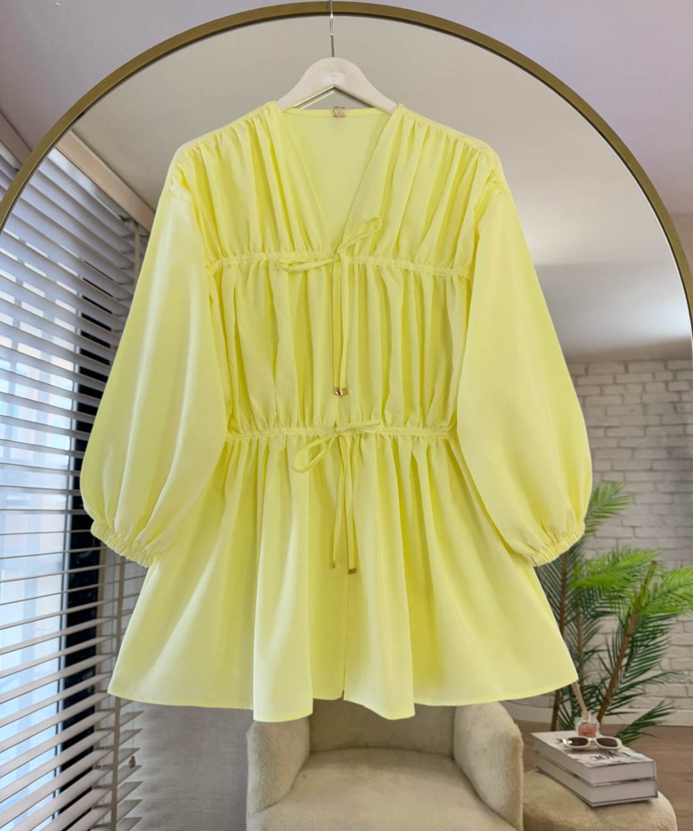 Önü Büzgülü Biyeli Tunik Sarı